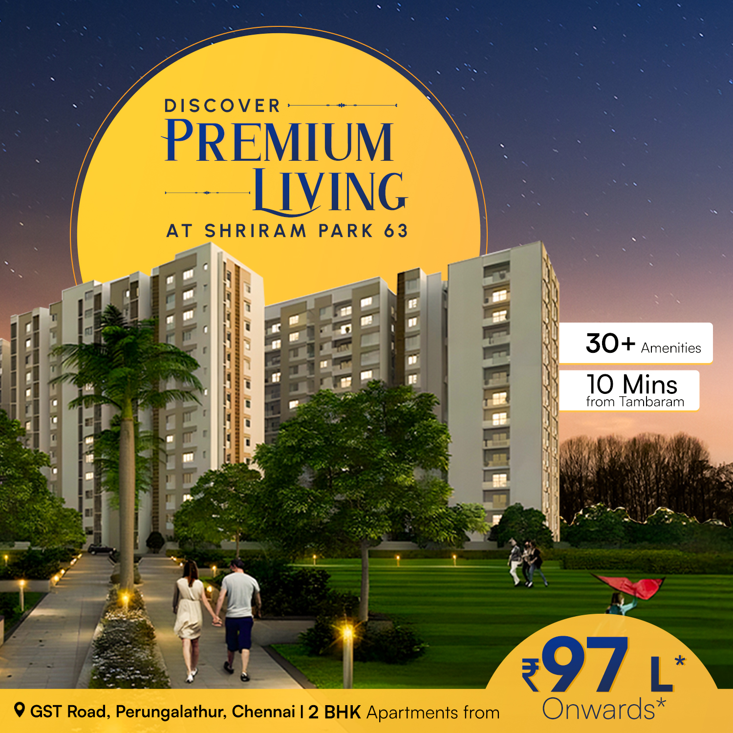 Shriram Park 63, a sprawling 57-acre township nestled in the heart of Perungalathur, Chennai South. This visionary development stands as a testament to modern living, seamlessly blending luxury with environmental consciousness. Positioned majestically overlooking the sprawling 1500-acre Vandalur Forest Reserve, Shriram Park 63 offers residents a serene retreat amidst nature's bounty. With over 40 state-of-the-art amenities, this township caters to every aspect of contemporary living, ensuring an unparalleled lifestyle experience.